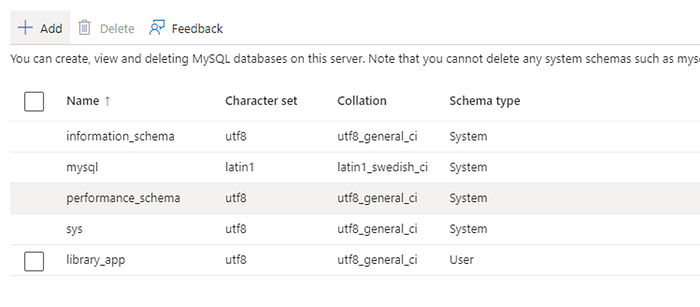 Azure MySQL Database :